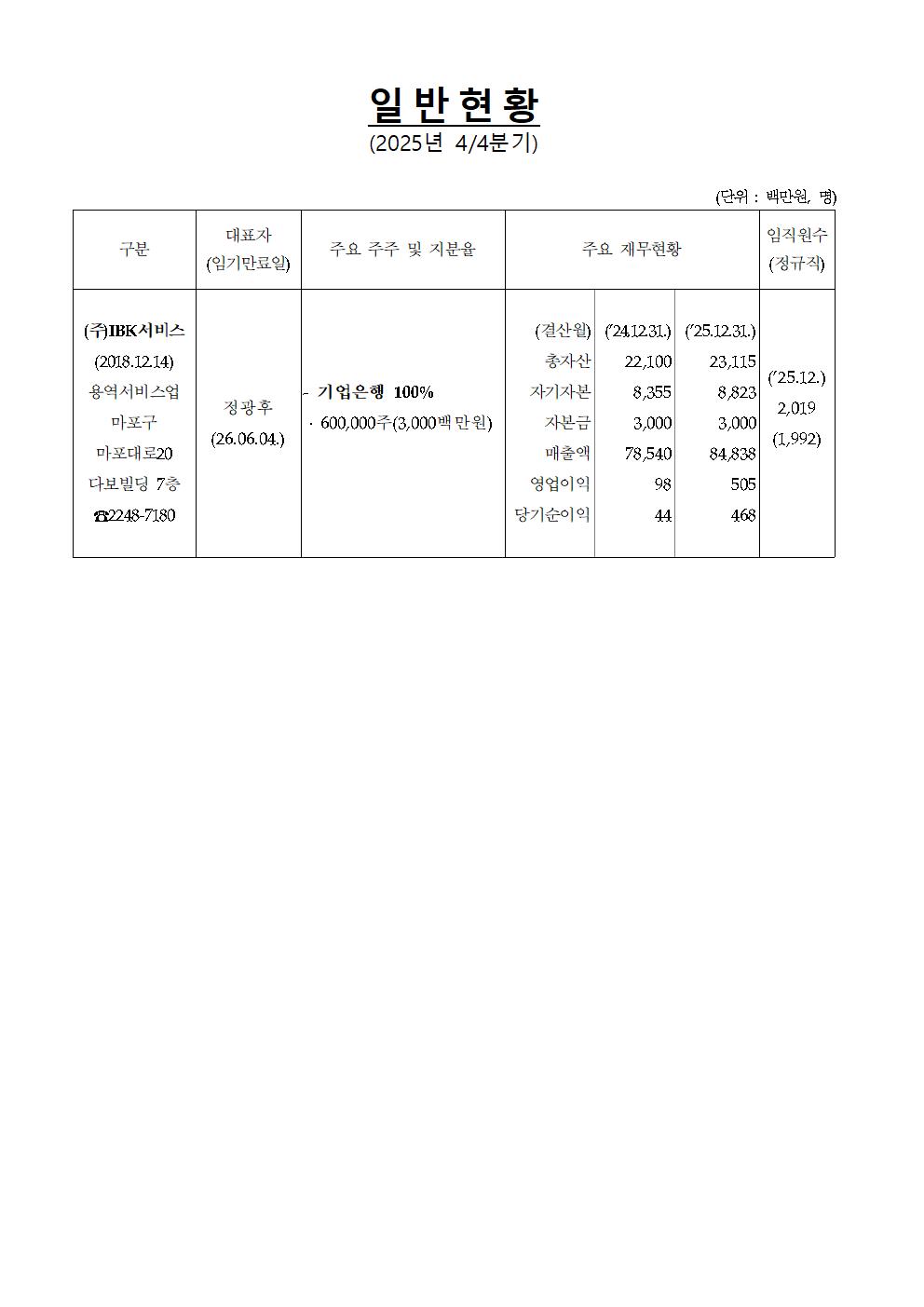 [경영공시 : 일반현황] 2025년 4/4분기