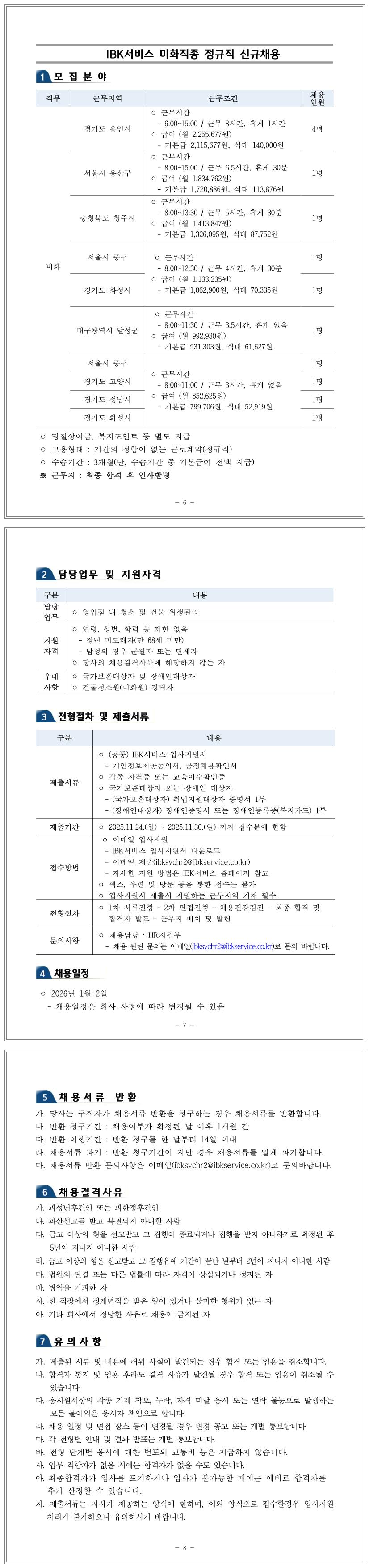 IBK서비스 미화직종 정규직 신규채용(서울시 용산구,중구/경기도 용인시,화성시,고양시,성남시/충청북도 청주시/대구광역시 달성군)