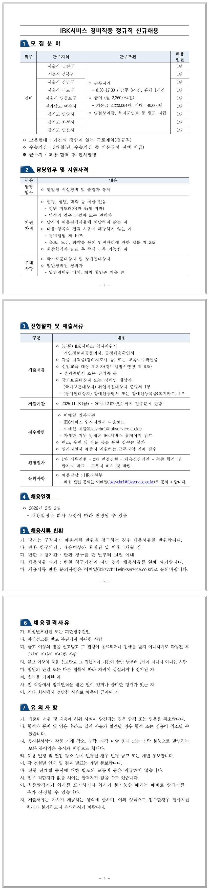 IBK서비스 경비직종 정규직 신규채용 (서울시 금천구,성북구,강남구,구로구,영등포구/전라남도 여수시/경기도 안양시,화성시,안산시)