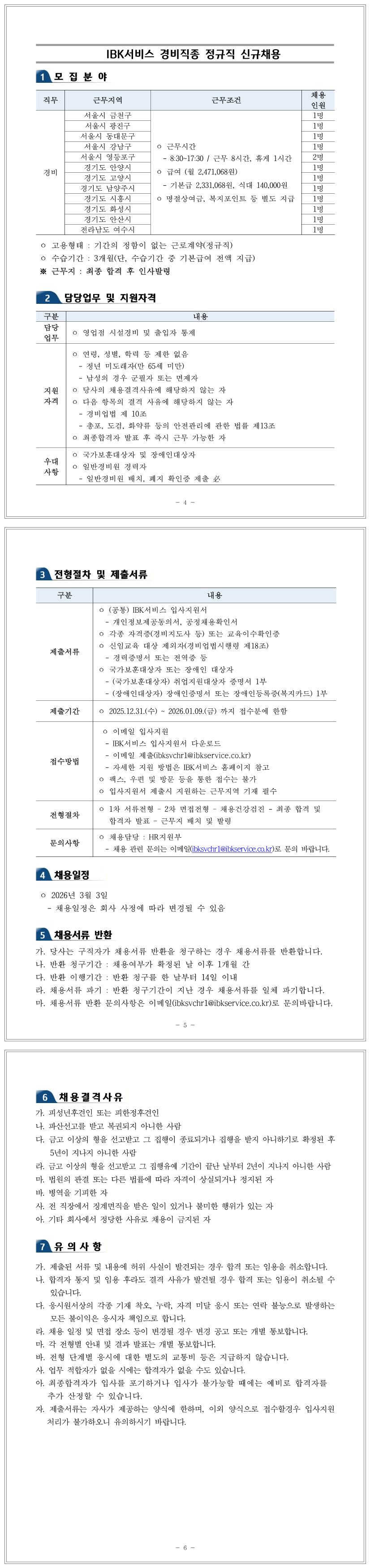 IBK서비스 경비직종 정규직 신규채용 (서울시 금천구,광진구,동대문구,강남구,영등포구/경기도 안양시,고양시,남양주시,시흥시,화성시,안산시/전라남도 여수시)