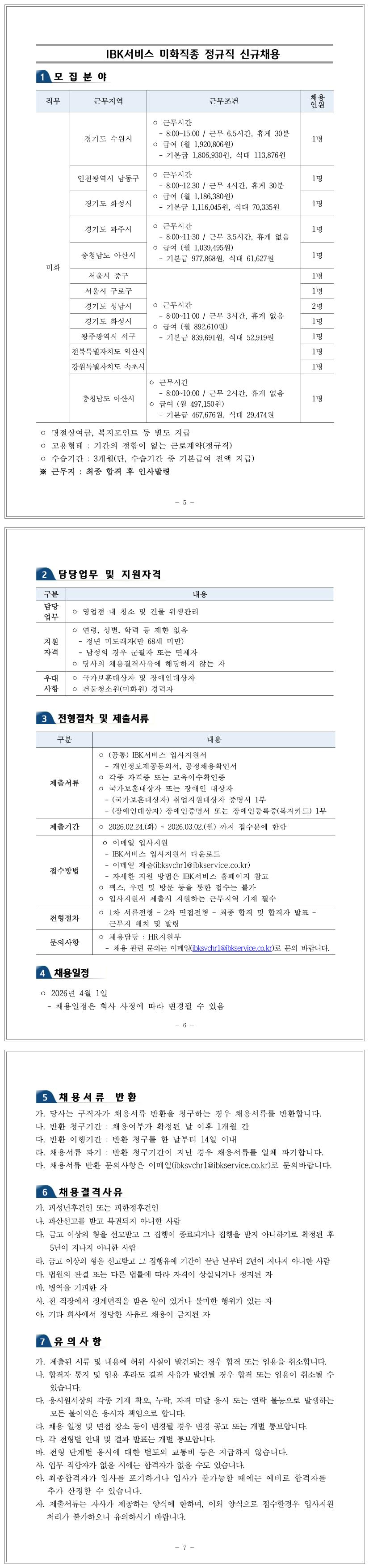 IBK서비스 미화직종 정규직 신규채용(서울시 중구, 구로구/경기도 성남시,수원시,파주시,화성시/인천 남동구/충남 아산시/전북 익산시/강원 속초시)