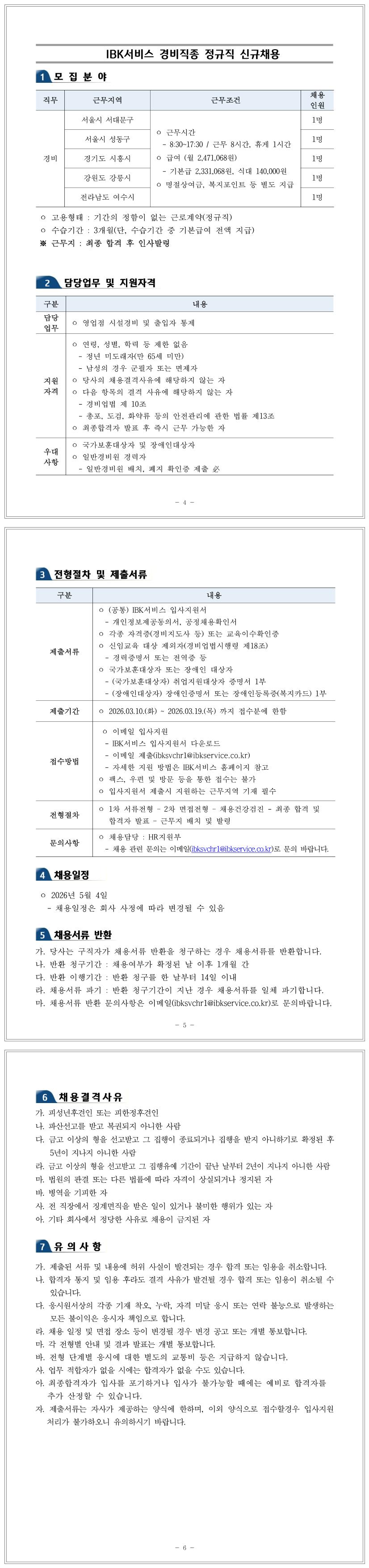 IBK서비스 경비직종 정규직 신규채용(서울시 서대문구, 성동구/경기도 시흥시/강원도 강릉시/전라남도 여수시)